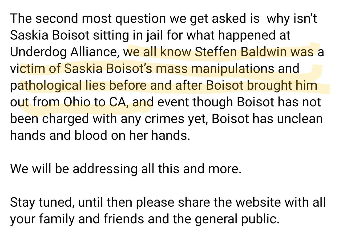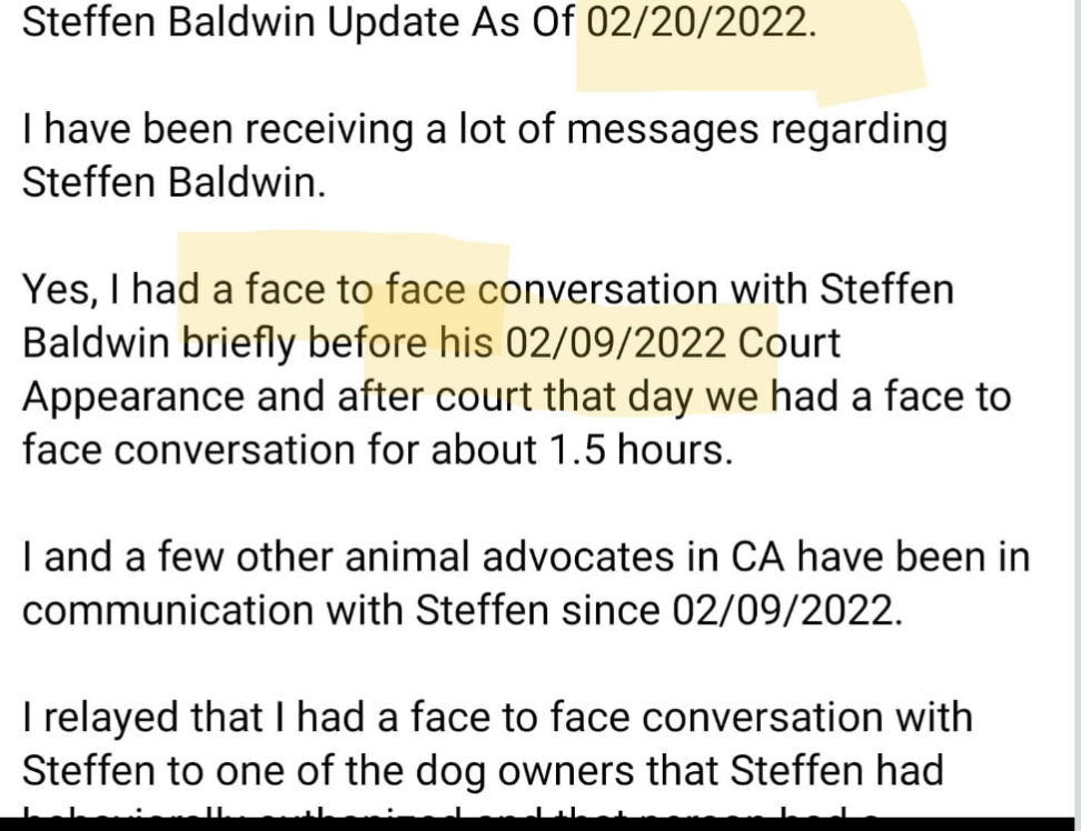 Logan formed the bizarre and unsupported opinion that Baldwin’s alleged bad acts were because he is actually the victim of a San Diego doctor/rescuer, SB, against whom Logan already had some weird grudge. Logan ranted about this theory on her nonprofit’s Facebook Page — and, later, on a Page she made dedicated solely to Dr. SB.