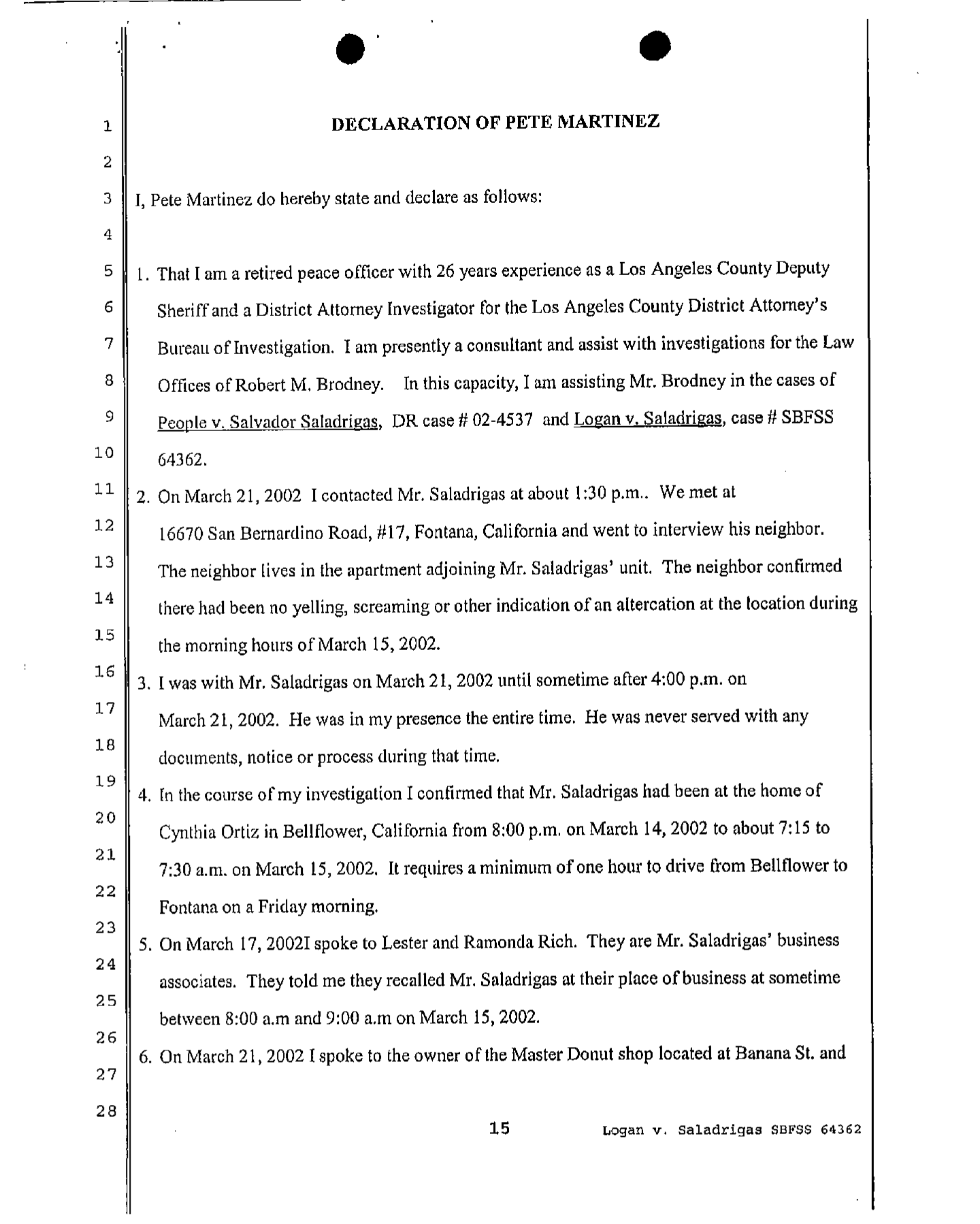 With the PI’s declaration, Salvador S’s attorney was able to get the restraining order thrown out. And it doesn’t appear the DA ever filed a criminal case against him based on Logan’s claims. (We did a name search in San Bernardino and Riverside counties.)