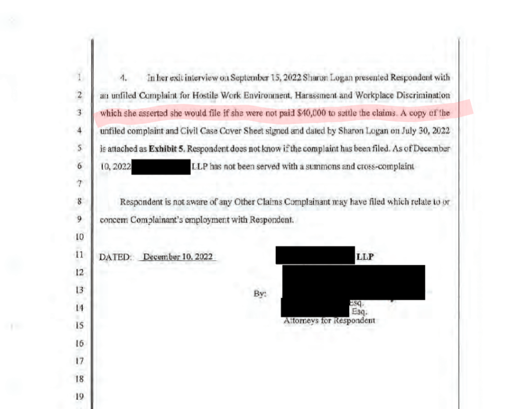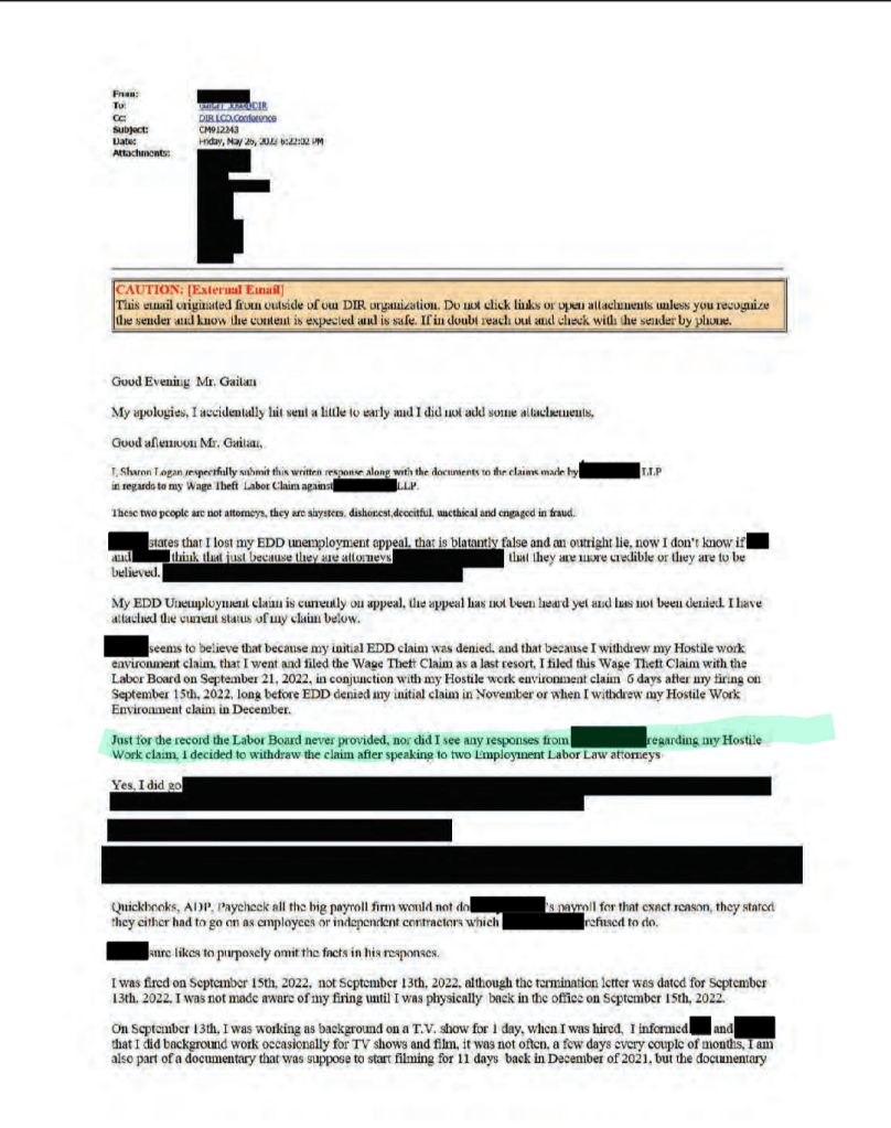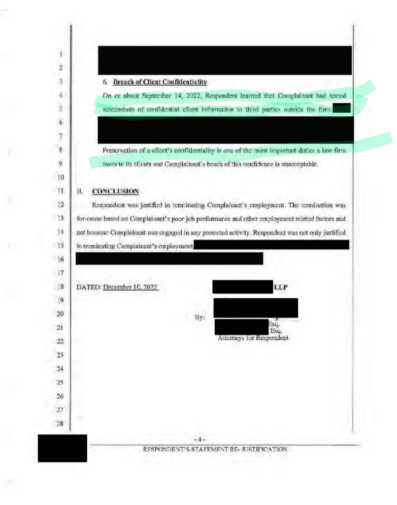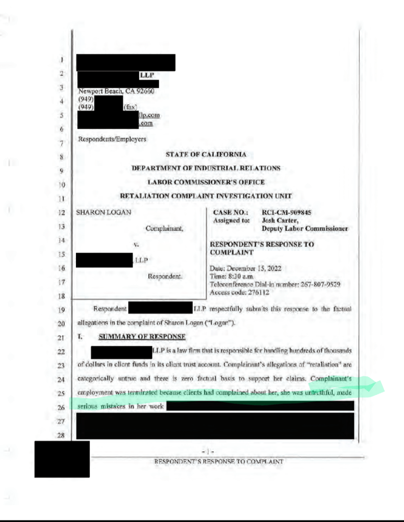 Interestingly, the law partners told the labor board they had already fired Logan earlier the same day, for incompetence and bad attitude, when we sent them our email the evening of September 13, 2022.
